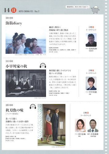 *映画「小早川家の秋」上映後にトークゲストとして出演します(映画上映14:00〜15:43)。